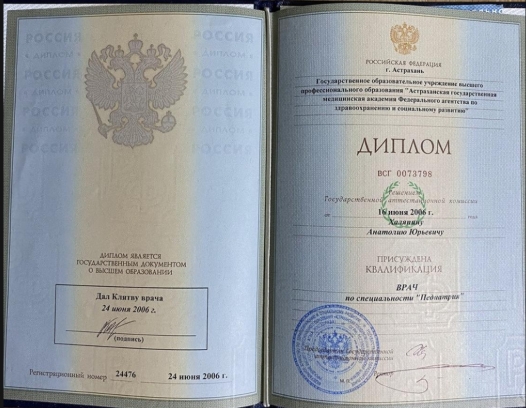 Астраханская государственная медицинская академия врач/педиатрия ( 2000-2006 гг);