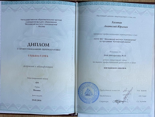 Московский институт психоанализа Юнгианский аналитик ( 2014-2016 гг);