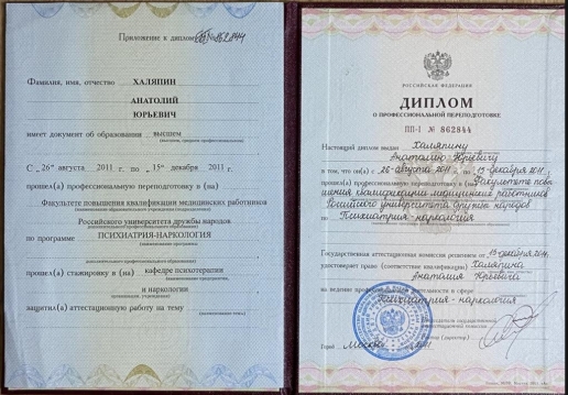 Российский Университет Дружбы Народов Психиатр-нарколог (2011-2011 гг);