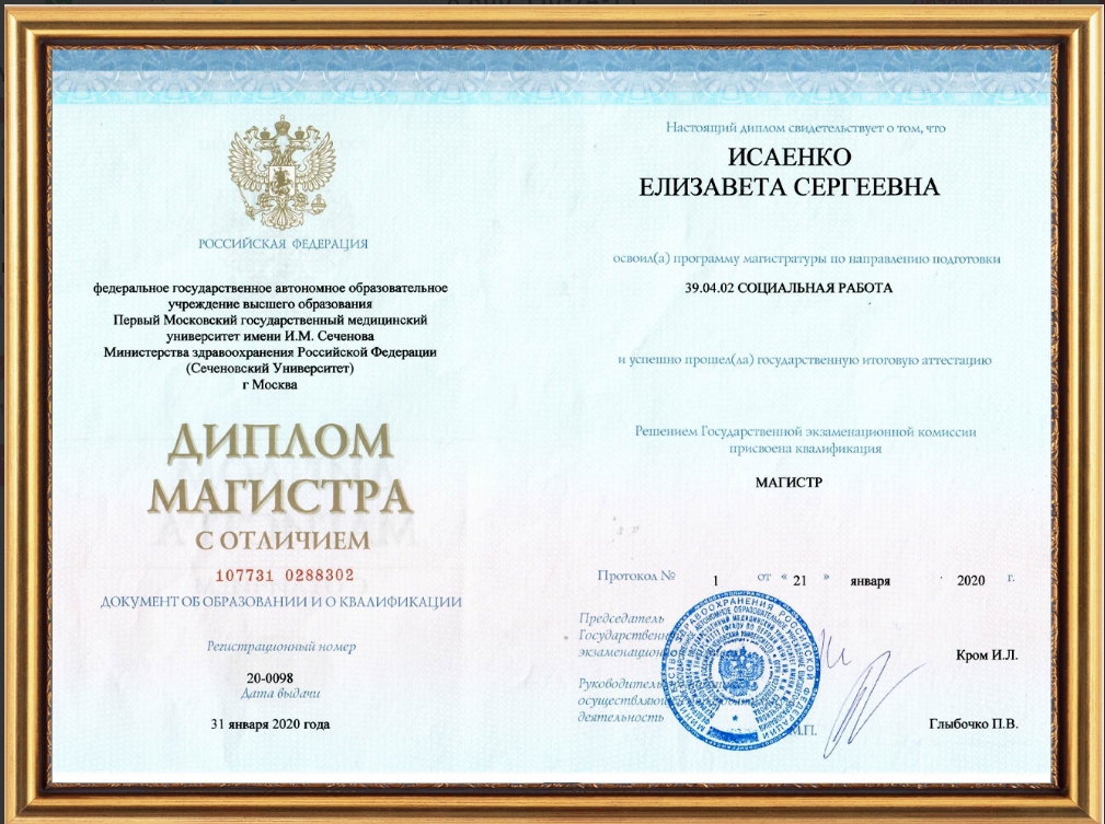 Первый Московский государственный медицинский университет имени И.М. Сеченова: Социальная работа (2020 г.);